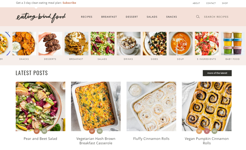 - “Deliciously Ella” is a vegan food blog that focuses on healthy, plant-based recipes.