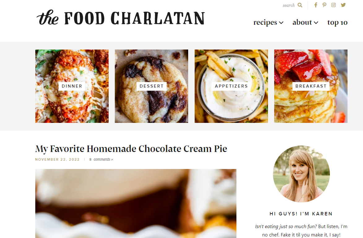 - “The Food Charlatan” is a food blog featuring comforting classics and modern twists on familiar dishes.