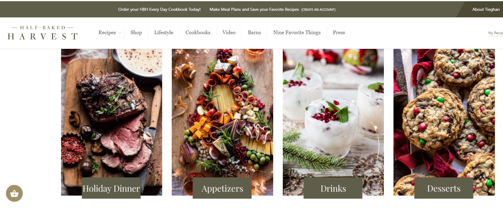 - “Half Baked Harvest” is a popular food blog with a mix of comfort food, healthy meals, and show-stopping desserts. You’ll find things like lower fat treats alongside easy bowls and game day snacks.