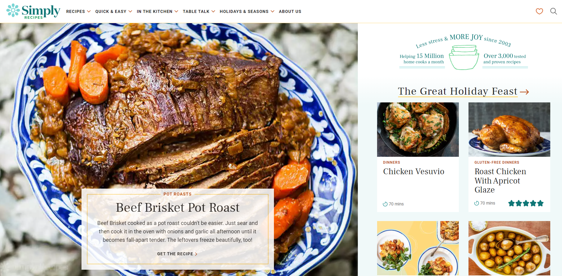 - “Simply Recipes” is a food blog with a focus on home cooking, featuring easy recipes for every occasion.
