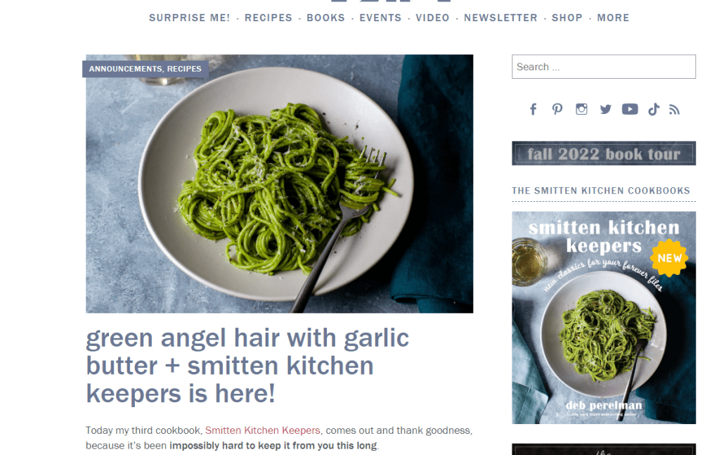 - “Smitten Kitchen” is a beloved food blog with a focus on home cooking, featuring recipes that are simple but sophisticated.