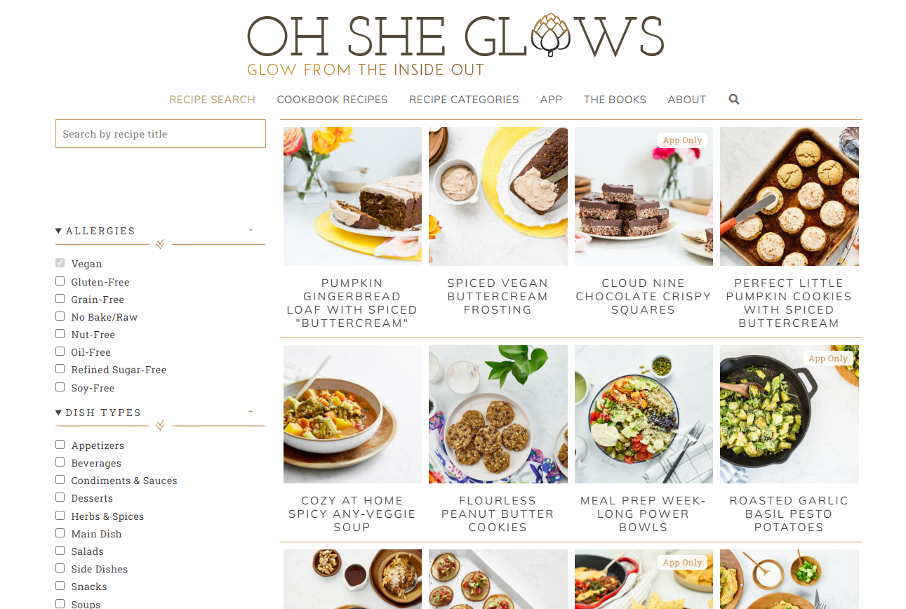 - Oh She Glows – This blog, written by bestselling cookbook author Angela Liddon, features a variety of vegan and plant-based recipes that are easy to follow and delicious. Angela’s recipes are often allergy-friendly and include options for gluten-free, soy-free, and nut-free diets.