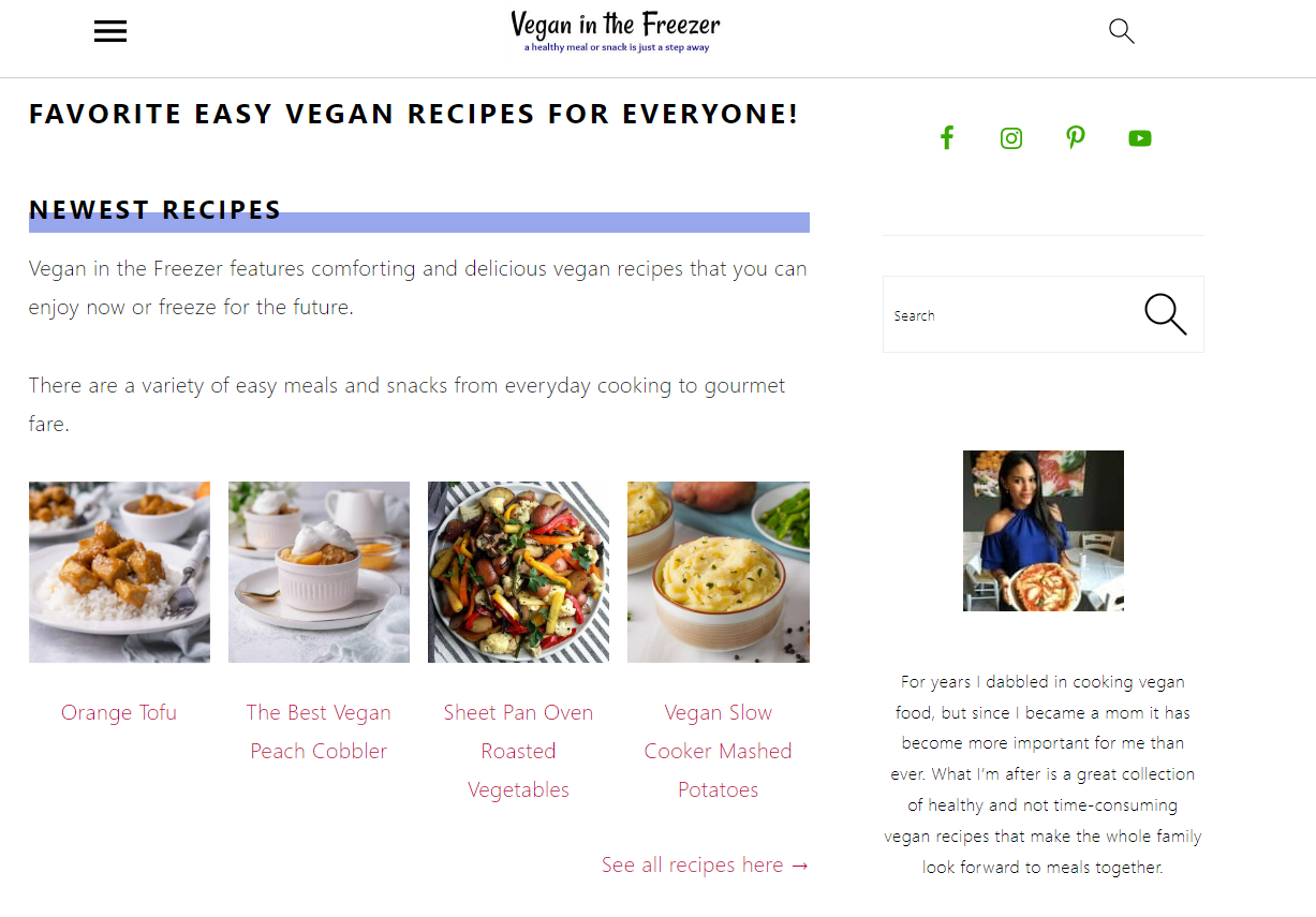 - Vegan in the Freezer – This blog is perfect for busy vegans, with a focus on quick and easy recipes that can be made in advance and stored in the freezer for later.
