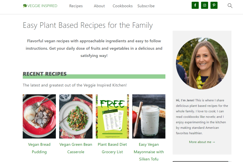 - Veggie Inspired – This blog, written by Jenn Sebestyen, features vegan and vegetarian recipes that are healthy, flavorful, and easy to make. Jenn’s recipes are often plant-based and gluten-free, making them suitable for a wide range of dietary needs.